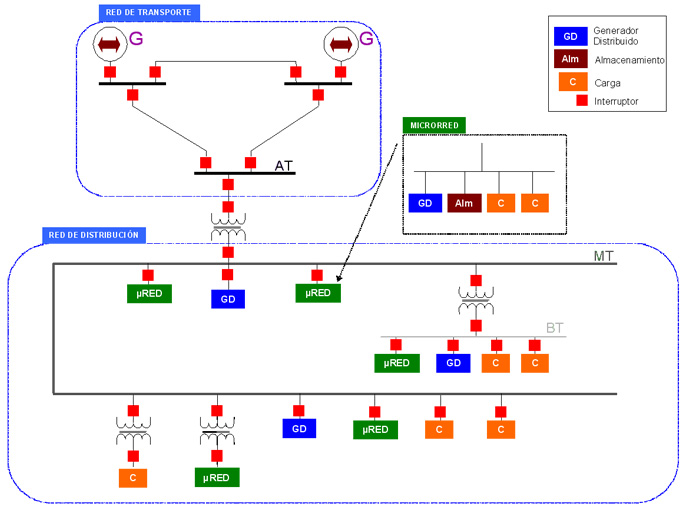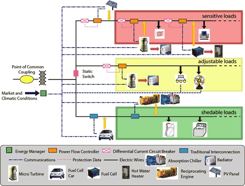Hola. Nuevamente para mencionarte que mi tema de tesis va por lo que son microgrid’s. Se necesita conocimientos en varios campos de ingenieria elèctrica, mecànica, pero detràs de todo esto, està de por hecho la fìsica, que da toda la explicaciòn al tema, partiendo desde lo màs bàsico. Diversos modelos sobre microgrids se muestran en la presente entrada. Unos mas vistosos que otros. Unos con mas detalle que otros. Pero la idea es la misma, una central de procesamiento de informaciòn, un mismo bus de distribuciòn de energìa, fuentes renovables y de emergencia cerca de las cargas elèctricas. El tema trae sus propios problemas debido a que no es la topologìa norrmal, comùn, antigua de generaciòn centralizada y distribuciòn en forma de àrbol acostumbrada. Numerosos problemas tècnicos saltan a primera vista y son tema de estudio. Esto es importante toda vez que se espera muy pronto tener en el mercado productos de microgris.