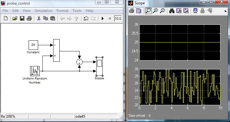Se muestra aca un simple diagrama de control y corrección de error. La salida se planteo que sea 25 y el programa permite tanto sumar o restar segun corresponda para mantener el valor. Hecho en Simulink, simple, pero puede servir para quienes se inician en teoria de control.