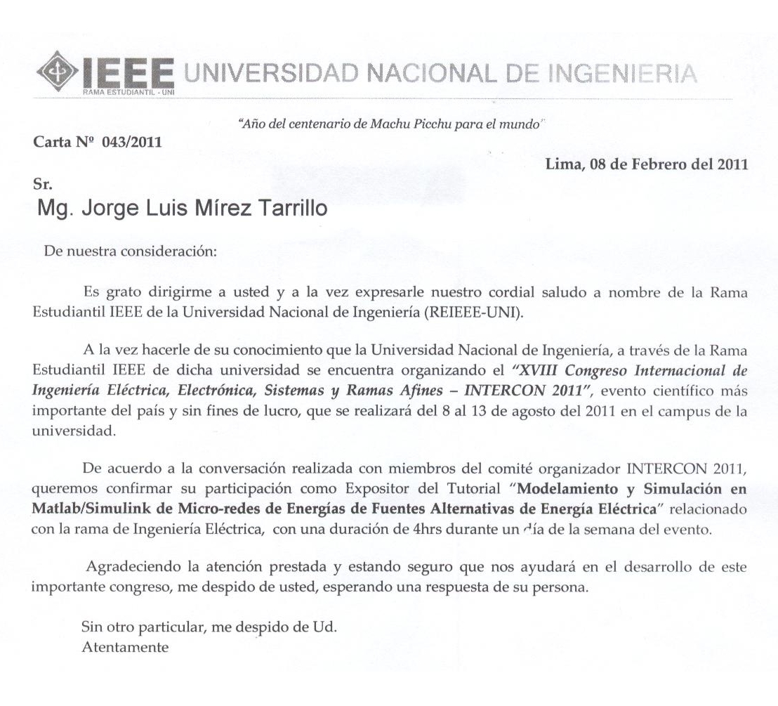 El INTERCON 2011 se realiza este año en la UNiversidad Nacional de Ingeniería del 8 al 13 de Agosto del 2011… es un Congreso Internacional de Ingeniería Eléctrica, Electrónica, Sistemas y Ramas Afines de bastante peso… la UNI dada sus particulares características en infraestructura y capacidad humana, seguro que darán un buen evento a todos los asistentes.