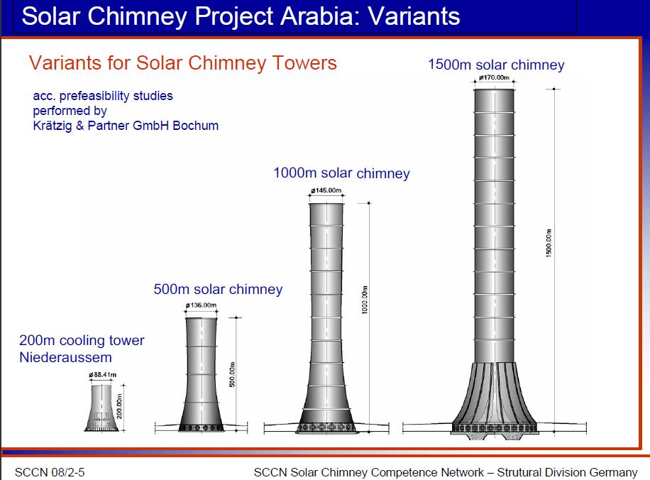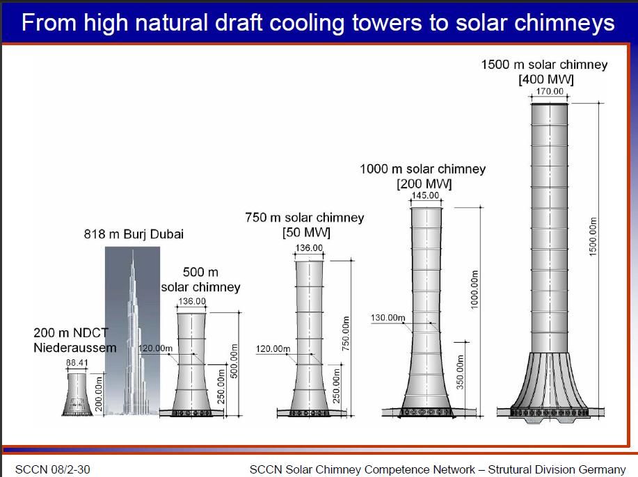 Hola a todos… numerosos diseños se han propuesto para la producción de electricidad mediante lo que es un TORRE SOLAR. Lo explicamos el principio en una entrada anterior. Lo que hay que resaltar en las figuras mostradas es la gran altura que se maneja en los diseños de las torres solares, comparables incluso a los edificios más altos construidos hasta la fecha y otros que han sido programados ser construidos incluyendo torres.