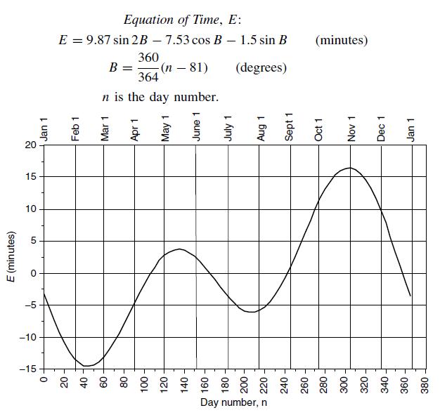 La ecuación del tiempo, viene a ser la diferencia entre un día de 24 horas ( tiempo de reloj local) y un día solar.