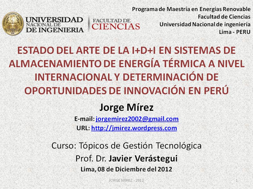 J545: ppt de mi ponencia “Estado del Arte de la R+D+I en Sistemas Almacenamiento Energía Térmica, Determinación de Oportunidades en Perú y Breve Estudio de Bechmarking”. Curso Gestión Tecnológica. Programa de Maestría en Energías Renovables. Universidad Nacional de Ingeniería. Lima PERU » Diapositiva1