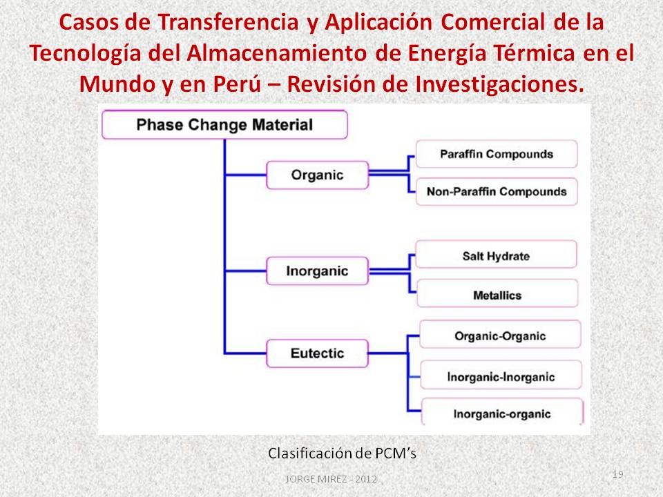 J545: ppt de mi ponencia “Estado del Arte de la R+D+I en Sistemas Almacenamiento Energía Térmica, Determinación de Oportunidades en Perú y Breve Estudio de Bechmarking”. Curso Gestión Tecnológica. Programa de Maestría en Energías Renovables. Universidad Nacional de Ingeniería. Lima PERU » Diapositiva19