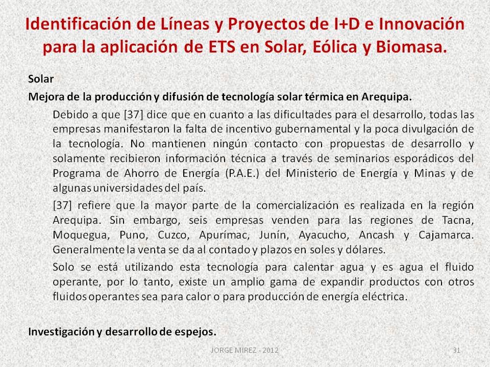 J545: ppt de mi ponencia “Estado del Arte de la R+D+I en Sistemas Almacenamiento Energía Térmica, Determinación de Oportunidades en Perú y Breve Estudio de Bechmarking”. Curso Gestión Tecnológica. Programa de Maestría en Energías Renovables. Universidad Nacional de Ingeniería. Lima PERU » Diapositiva31