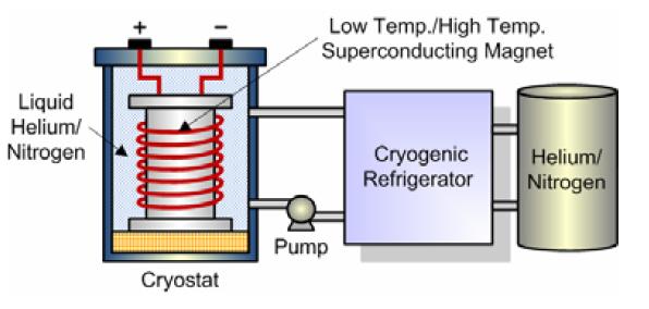 La base de este dispositivo es un gran SC, cuya estructura básica está compuesto de los componentes de la bobina (el SC con su soporte y componentes de conexión, y el criostato) y el sistema de refrigeración criogénico.