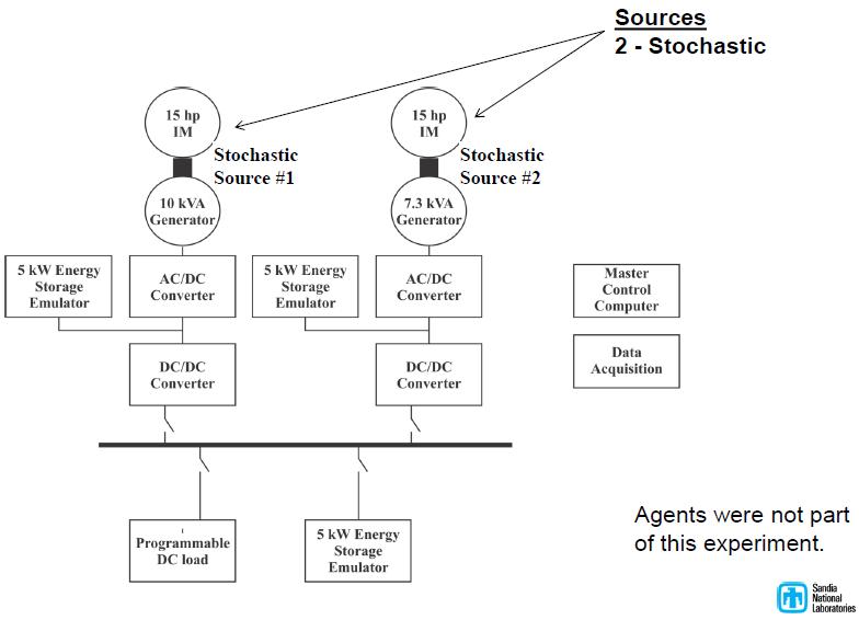 Atrás han quedado los cálculos en que se fijan valores conocidos o recolectados como datos estadísticos. Ahora se realiza también los análisis con datos estocásticos, debido a la forma en que algunas fuentes de energía renovable funcionan debido a la variable medioambiental de la irradiación solar o de la velocidad del viento. Para ejemplo de esto, Laboratorios Sandia tiene una configuración de experimentación como se muestra en la figura. Es un gran avance y trabajo de investigación, dado que en la parte experimental se refleja todos aquellos efectos que un modelo matemático no puede contemplar, pero eso no significa, que lo experimental sea lo único que vale (como suele pensarse en Perú), sino que, junto con un adecuado modelamiento matemático, los datos experimentales sirven de mucho para que con un adecuado análisis permitan conocer aquellas causas que permiten esa variación entre lo ideal y el resultado experimental. Tratar con variables estocásticas, sirve de mucho en el comportamiento de las redes eléctricas del futuro (smart grid, microgrid, generación distribuida).