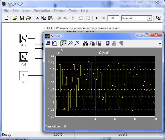 Se hizo el modelamiento de esta configuración y luego la simulación que puede ser modificada según lo que se desea analizar, ambos en Matlab/Simulink, lográndose un resultado equivalente al mostrado en la segunda figura variando obviamente el ángulo, el resultado de la simulación se da en la siguiente figura: