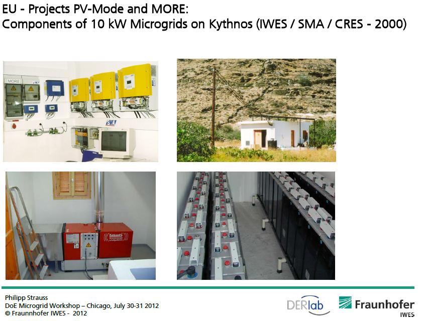 Estimados lectores, esta microgrid fue presentada en un evento en el 2012 al cual he tenido acceso. Tienen ahi las figuras de las partes mas descriptivas: el emplazamiento y los equipos utilizados.