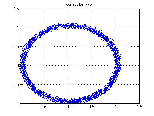 En muchos casos de las diferentes temáticas tratadas en las energías renovables, los factores medioambientales tienen comportamiento aleatorio; también, la forma con que se consume la energía y los valores de tensión, corriente y energía que circulan a través de las redes eléctricas o microgrid o sistema eléctricos en general. Sin embargo, el gran reto de ingeniería, es que a pesar de que haya (y que siempre habrá) factores de comportamiento aleatorio, la respuesta del sistema o su comportamiento esté siempre dentro de lo ya establecido en la mesa de trabajo del ingeniero. La gráfica muestra el comportamiento de una señal senoidal dibujado como curva paramétrica a la que se ha añadido una perturbación aleatoria, a pesar de que no tenga la forma deseada (una curva cerrada), nos muestra que el comportamiento cumple un movimiento casi circular con ligera variación de su trayectoria ideal. Este aleatorio añadido sirve para que en casos específicos de estudio se determine el posible valor del aleatorio en base a los datos recolectados de campo o de laboratorio. Gráfica hecha en Matlab de MathWorks Inc.