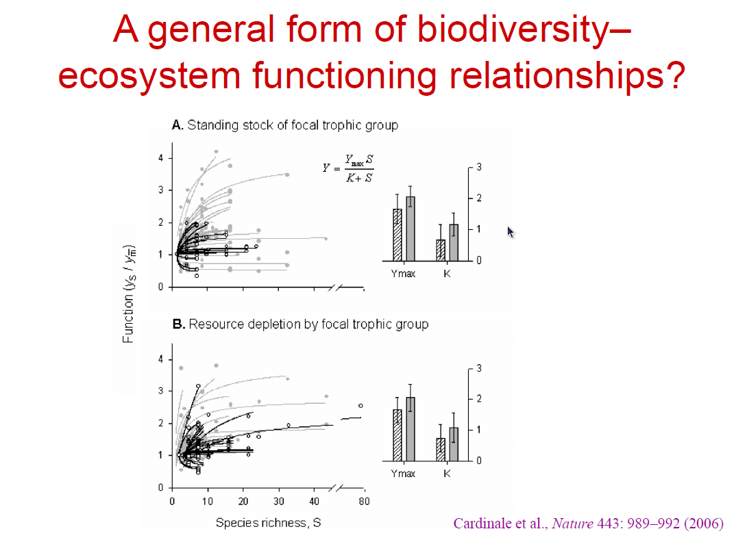 De hecho que los monocultivos no sirven para enfrentar el cambio medioambiental en proceso actualmente (y del cual no hay marcha atras). Es logico ver en no solo la grandes plantaciones sino en los pequenas plantaciones hechas en las comunidades basadas principalmente en uno o pocos cultivos como lo suelen ser: maiz, papa, etc; en que en las epocas de no cultivo, la erosion es fuerte y poco a poco se va degenerando la calidad del suelo. Ante ello, es necesario y como se observa en la presente grafica que una mayor diversidad de especies, trae consigo una mayor capacidad de enfrentar los cambios medioambientales.